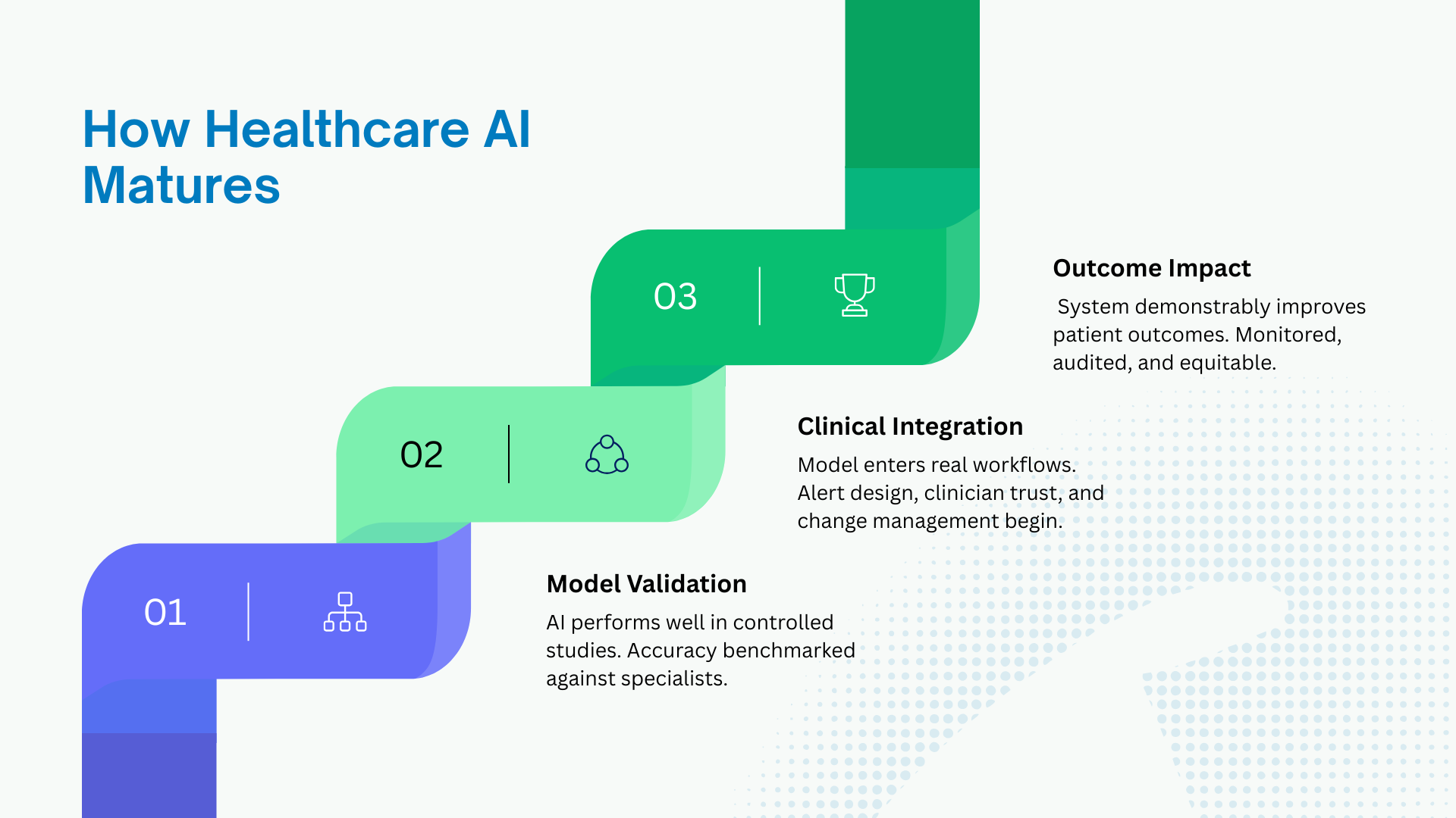 Healthcare AI is not early. The foundational research is done. The regulatory frameworks β imperfect as they are β exist. Early deployments have generated enough real-world evidence to understand, with reasonable clarity, what works and what does not.